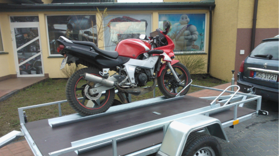 Wypożyczenie przyczepy do przewozu motocykli w cenie 70 zł/doba brutto. Odbiór w Antonie, ul. Mazurska 55, 07-410 Ostrołęka, kontakt: 609-125-421, 29 764-88-27.