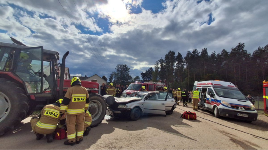 Drugi zakładał wypadek drogowy z udziałem samochodu osobowego i ciągnika rolniczego. Druhowie użyli specjalistycznego sprzętu hydraulicznego, by wydobyć poszkodowanych i udzielić im pomocy.