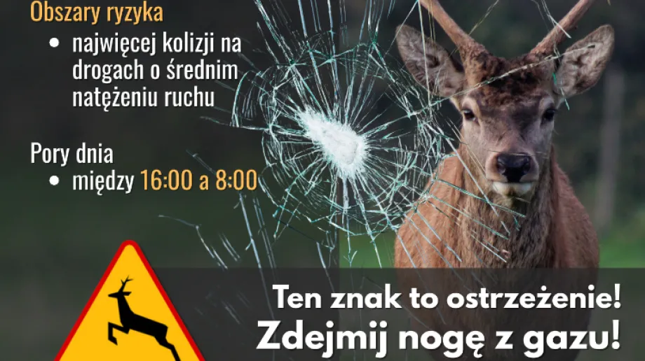 Twój refleks i 10 km/h mniej na liczniku decydują o życiu – Twoim i zwierzęcia. Prosimy o: