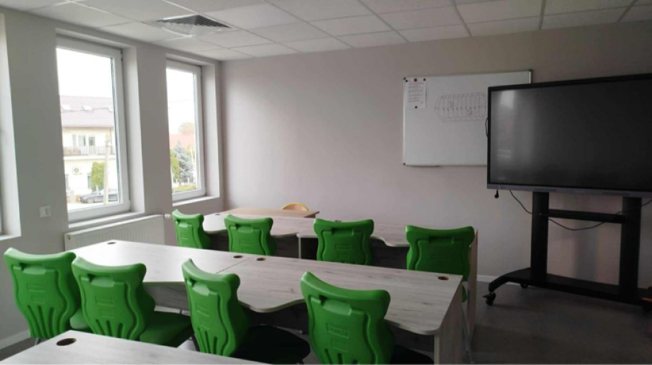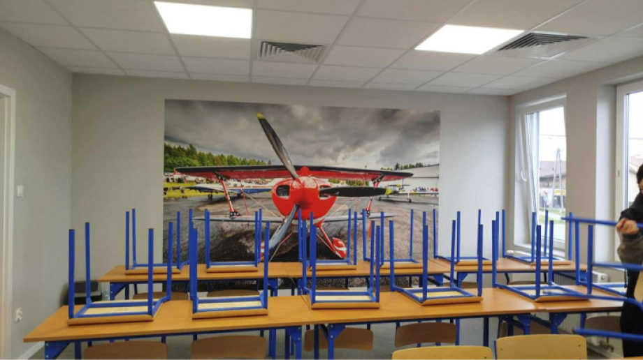 Każda klasopracownia została wyposażona w nowoczesne tablice multimedialne, które wspierają interaktywną naukę. Kolorowe tapety z motywem samolotów nadają wnętrzom charakteru, a nowe ławki i krzesła zapewniają wygodę i ergonomię, co bezpośrednio wpływa na jakość nauki.