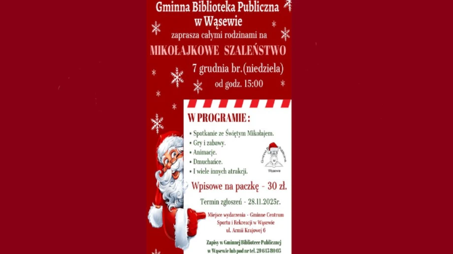 Wiadomości z powiatu Mikołajkowe szaleństwo w Wąsewie. Będzie spotkanie z Mikołajem!