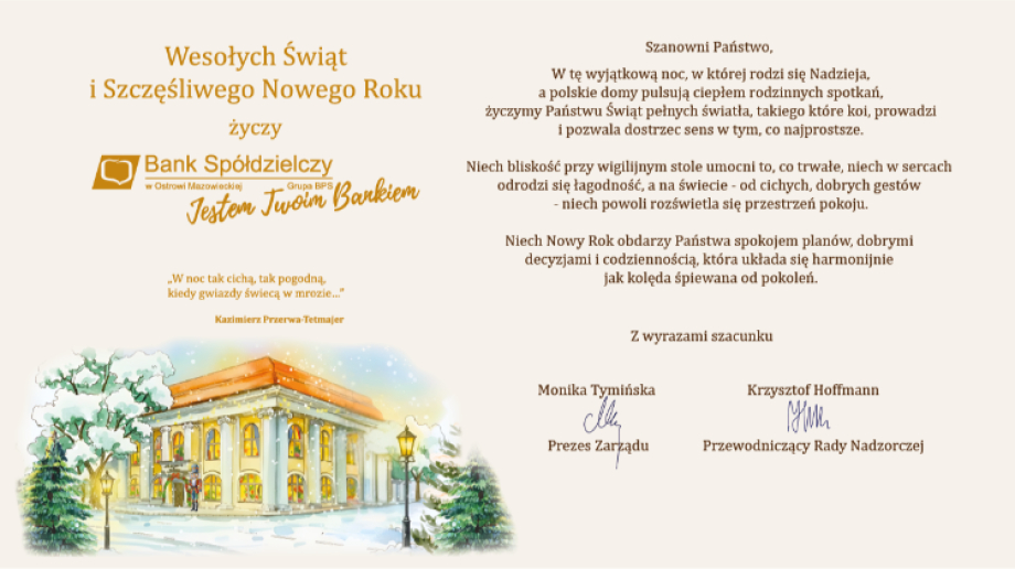 Niech Nowy Rok obdarzy Państwa spokojem planów, dobrymi decyzjami i codziennością, która układa się harmonijnie jak kolęda śpiewana od pokoleń.