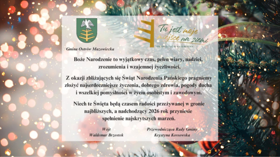 Niech te Święta będą czasem radości przeżywanej w gronie najbliższych, a nadchodzący 2026 rok przyniesie spełnienie najskrytszych marzeń.