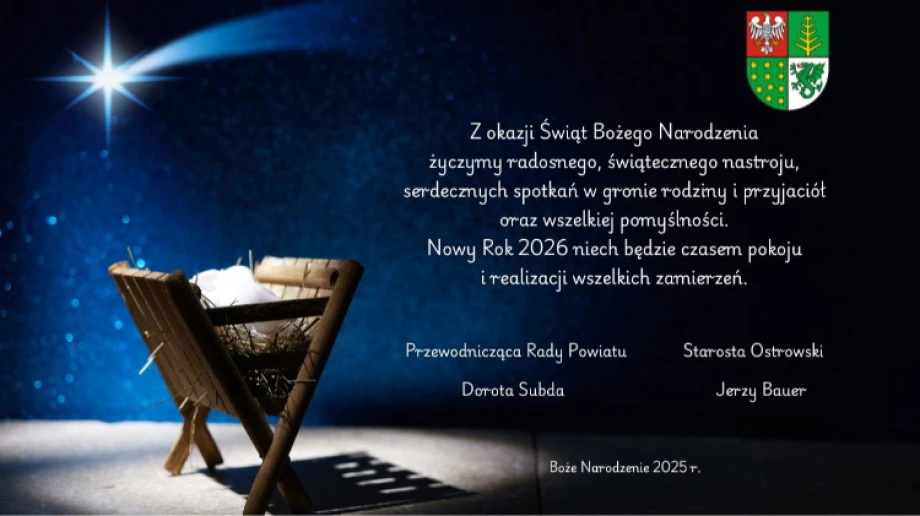 Z okazji Świąt Bożego Narodzenia życzymy radosnego, świątecznego nastroju, serdecznych spotkań w gronie rodziny i przyjaciół oraz wszelkiej pomyślności. Nowy Rok 2026 niech będzie czasem pokoju i realizacji wszelkich zamierzeń.