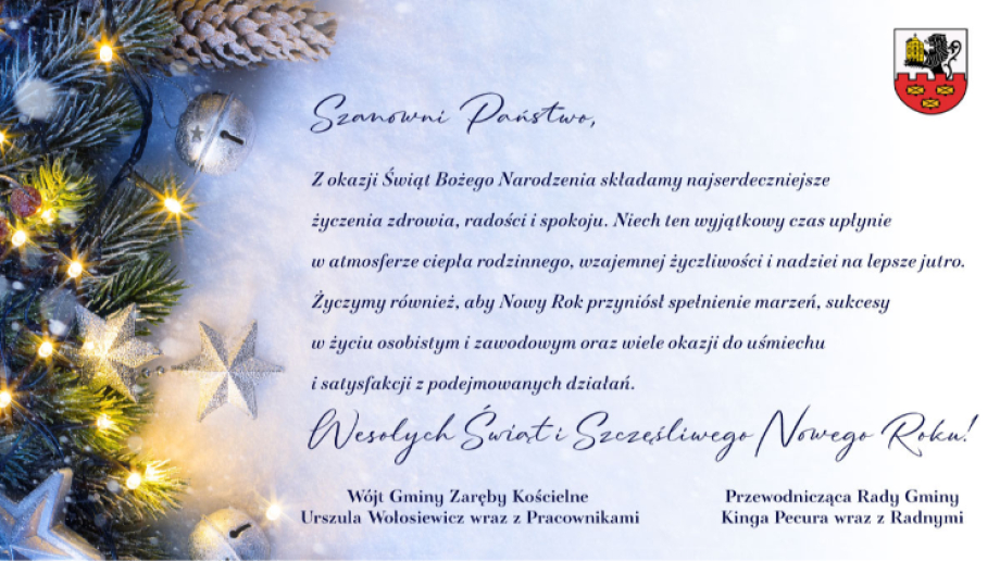 Pozostałe wiadomości Życzenia świąteczne władz samorządowych Gminy Zaręby Kościelne
