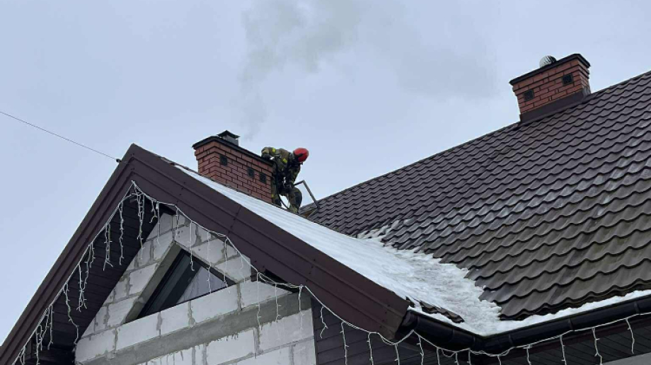 Po przyjeździe strażacy niezwłocznie przystąpili do działań. Wygaszono palenisko oraz usunięto materiał palny z kotła centralnego ogrzewania. Następnie, działając w zabezpieczeniu, strażacy weszli na dach budynku. Ich celem było udrożnienie przewodu kominowego i likwidacja zagrożenia.
