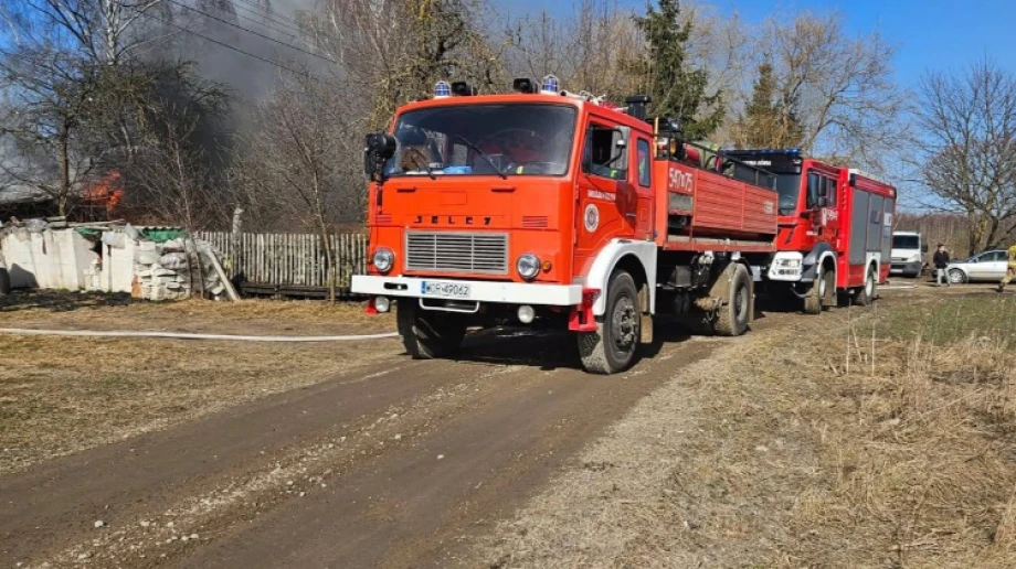 W poniedziałek 9 marca 2026 po godz. 10.30 straż pożarna otrzymała zgłoszenie o pożarze nieużytków i drewnianego budynku gospodarczego.