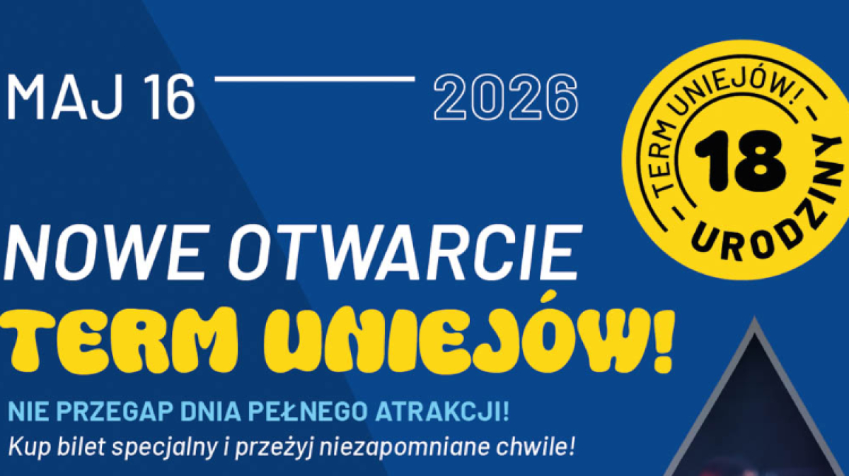 To będzie jedno z największych wydarzeń tej wiosny w regionie. Już 16 maja Termy Uniejów zapraszają na wielkie otwarcie nowej, rozbudowanej strefy letniej. To nie tylko inauguracja inwestycji, ale także wyjątkowe świętowanie 18-lecia kompleksu z koncertem i całodniową ofertą atrakcji. Imprezę poprowadzi Agnieszka Hyży.