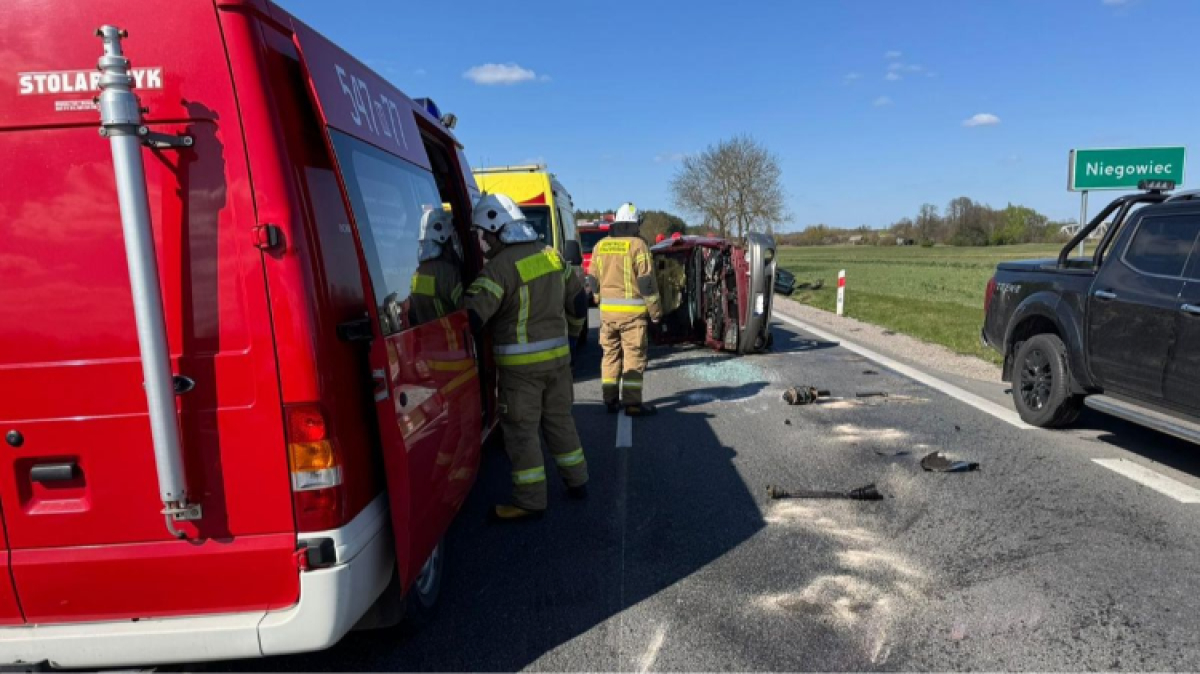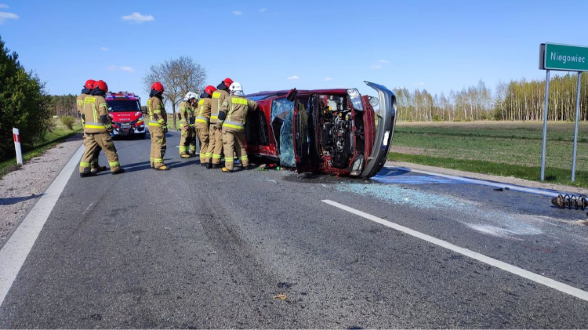 Do zdarzenia doszło w poniedziałek 20 kwietnia 2026 roku po godzinie 14.00 w miejscowości Niegowiec na drodze wojewódzkiej nr 627. To właśnie tam skierowano zastępy straży, policyjne patrole oraz zespoły ratownictwa medycznego.